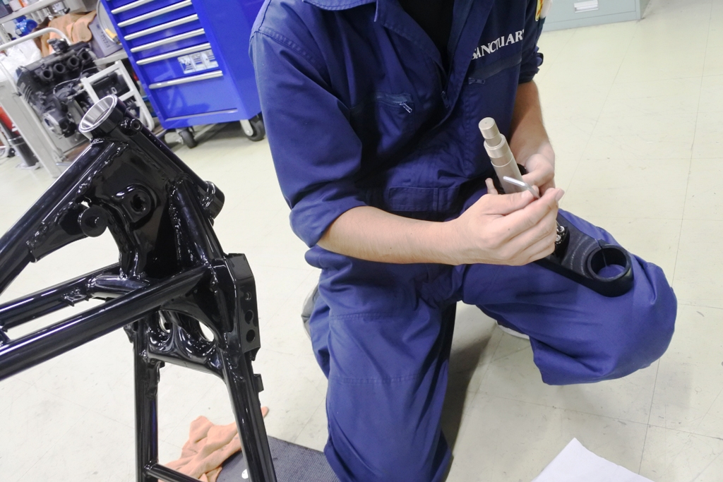 Drilling and assembling the shaft of the SCULPTURE-made steering bracket kit for KATANA.