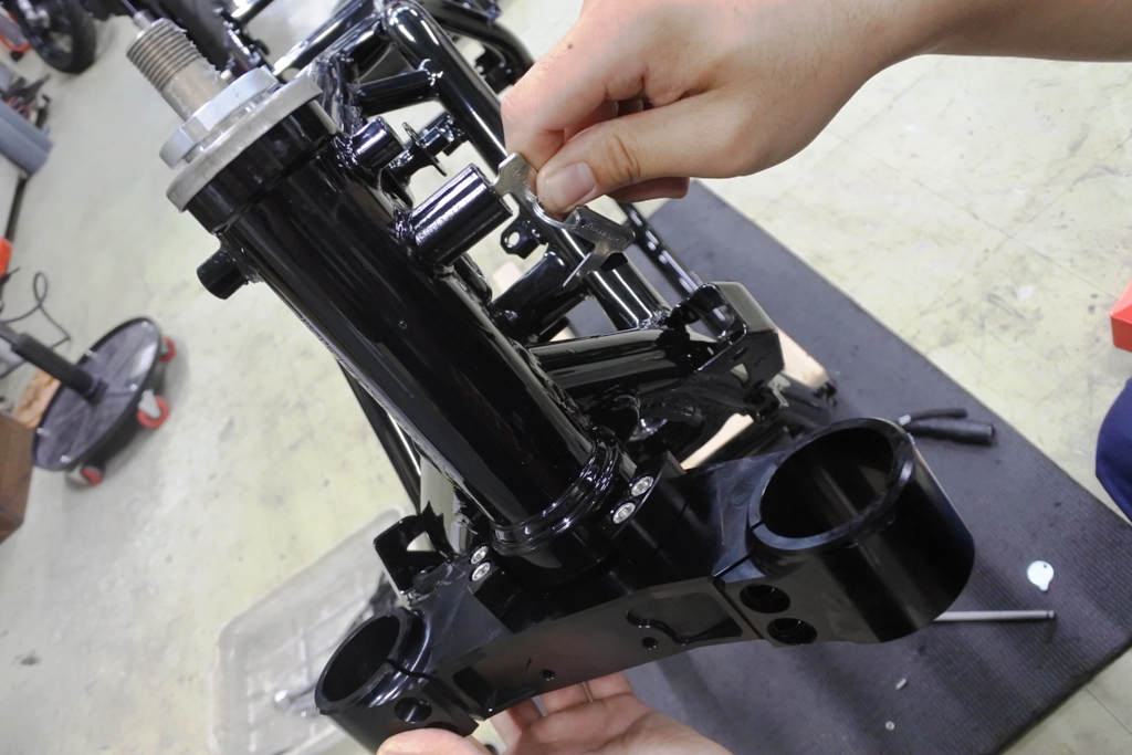 SCULPTURE製 KATANA用ステアリングステムKITのシャフトに穴開け加工を
