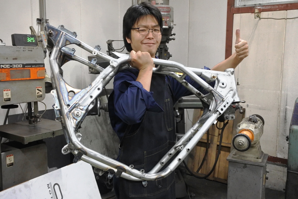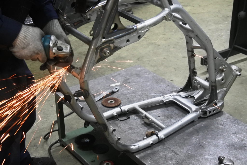 The RCM-500 frame we processed to make the pivot part of the rear swing arm 7 mm lower.