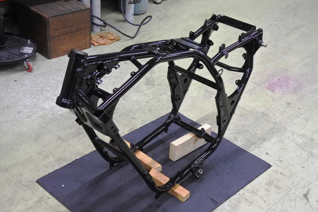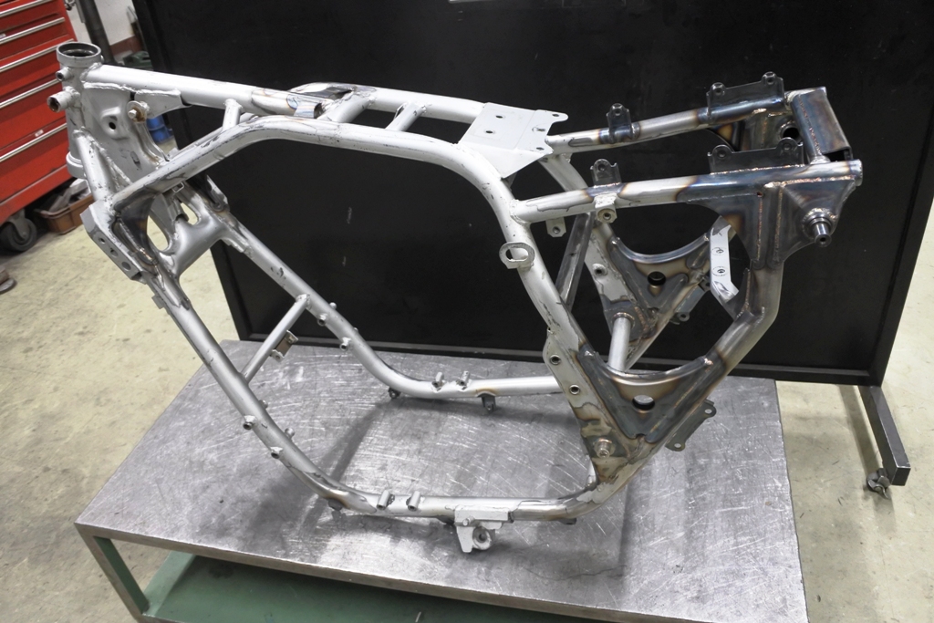 スイングアームピボット部を7mmローダウン加工したRCM‐500のフレーム。