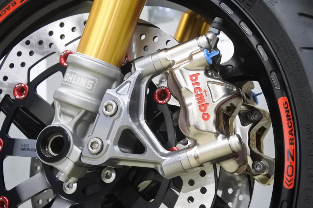 It has been completely composed of excellent parts of top makers which have been successful in World Championships, such as OZ’s racing wheel, Brembo’s radial mount caliper and OHLINS’s front suspension.
