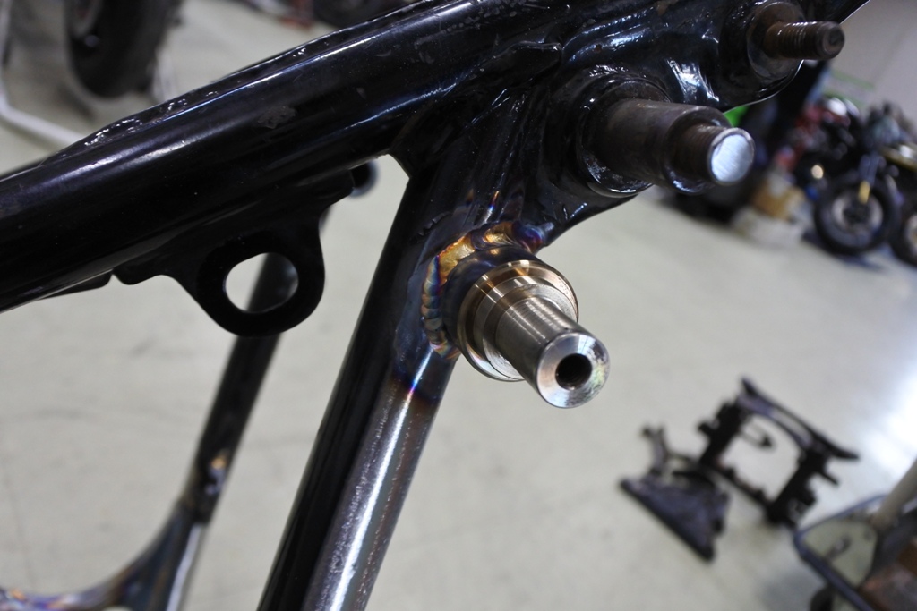 予めフレーム側に溶接で追加しておいたボスを利用するV型ツーピースの
