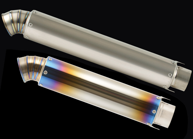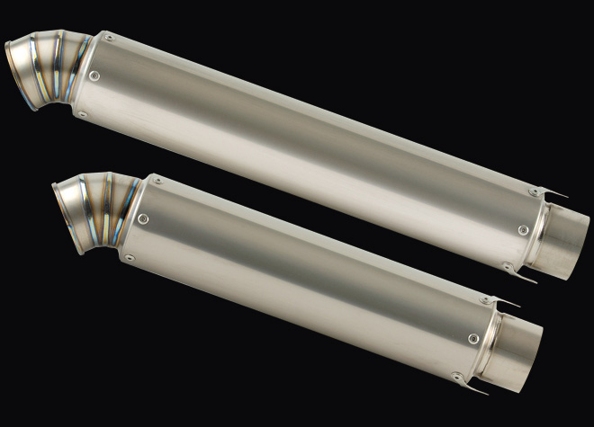 • サイレンサー差込口径φ60.5のEXマフラーに取付可能です(但し一部社外EXマフラーは取付の際、サイレンサー本体が大きく外側へ向いてしまう物もあります)。φ60.5以外の差込口径の場合は別売りのサイレンサーアダプターをお買い求めください。(アダプター製作可能径:φ50.0〜φ56.5)